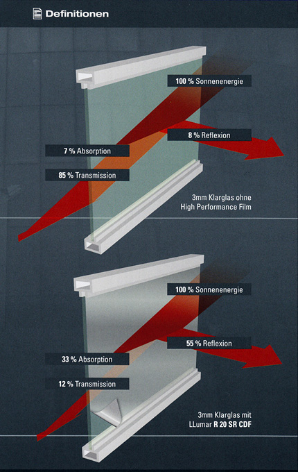 - Bis zu 80 % Zurückweisung der Gesamtsonnenenergie